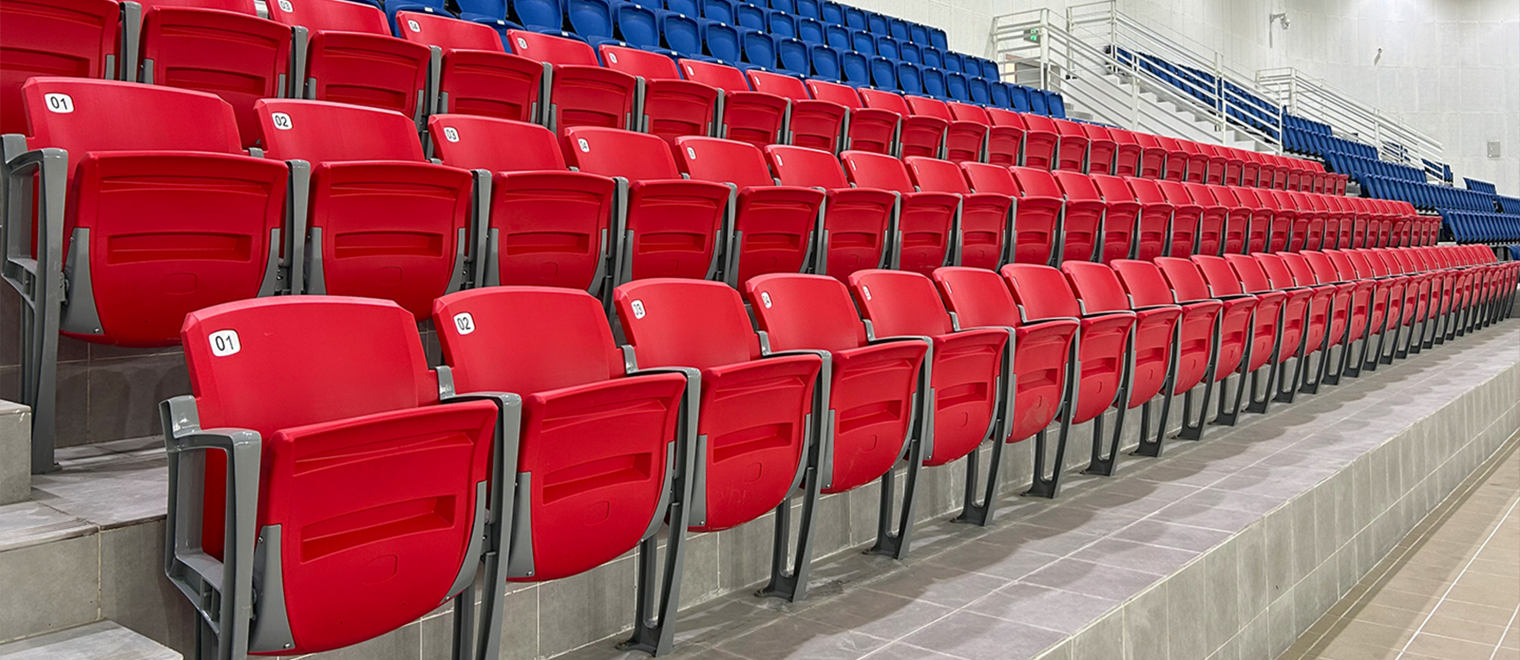 說明:座椅可實現立裝、側裝兩種安裝方式以滿足不同場地的要求,翻折式座椅能為場地提供更充足的入席空間,場地適應性更佳,座椅可選配軟包以滿足更高的使用要求,座椅采用高密度聚乙烯(HDPE)為原料,中空吹塑一體成型,該材料具有良好的防水性與抗沖擊性,機械強度和化學穩定性好,具有良好的耐候性(耐熱性和耐寒性),座椅顏色選用專業著色母粒,可保證顏色持久靚麗,座椅顏色可根據客戶要求定制,可針對不同場地特性設計個性化配色方案。