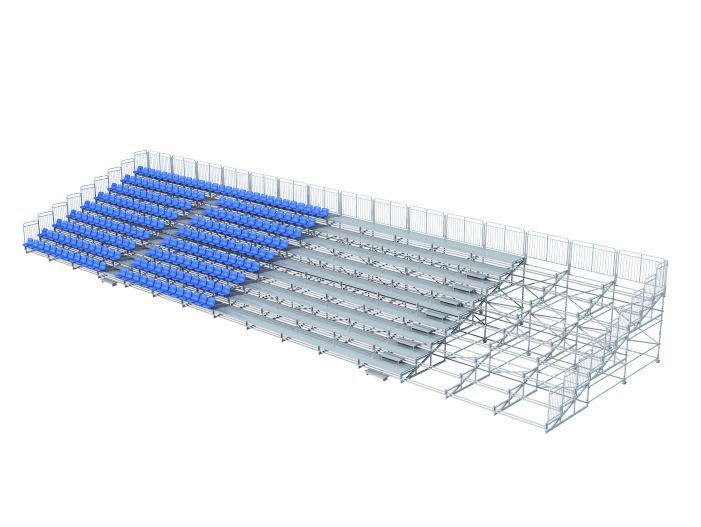 產品特點:看臺由單元模塊拼裝而成,可橫向、縱向增減模組以靈活滿足各種場地需求,主要結構(支架)采用矩形管、圓管及法蘭盤組焊而成,標準的支架、踏板、座椅、護欄、腳手架底盤,極大的簡化了看臺的安裝、拆卸過程,場地適應性強,是臨時的大型看臺系統的絕佳選擇。
